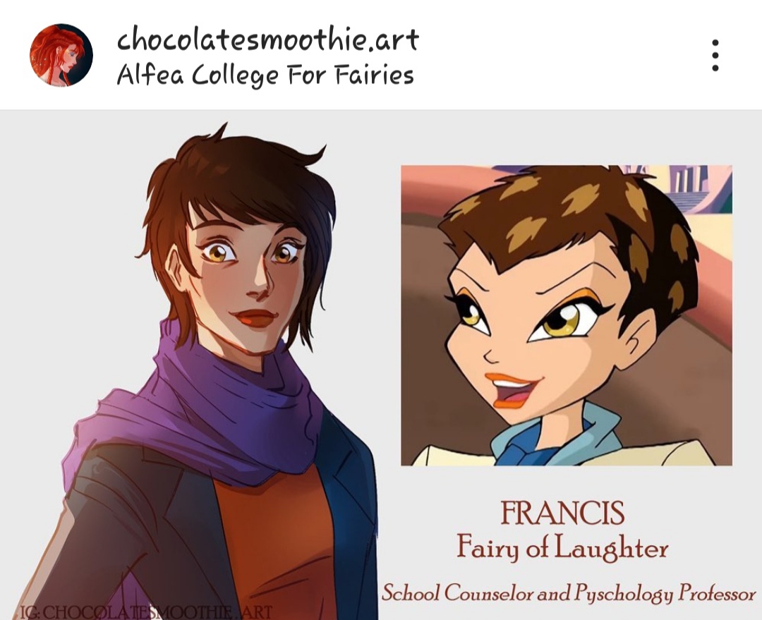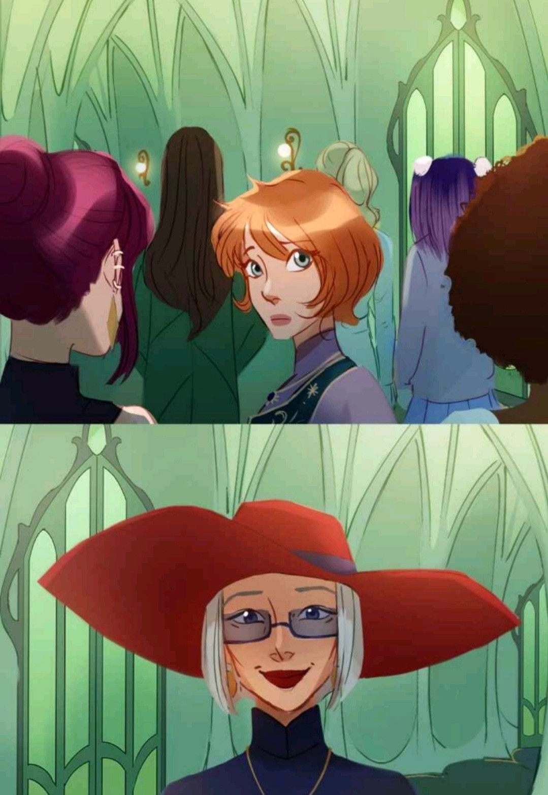 اون وسطی یعنی الیس خانم، ناظم جدید هستند یعنی یجورایی جانشین گریسلدا ست. گریسلدا تو انمشین معاون یا همون ناظم بوده. قبلا هم گفتم که ایشون تو فصل چهارم، یکی از دخترهایی بود که تو اتاق قدیمی وینکس بودند.